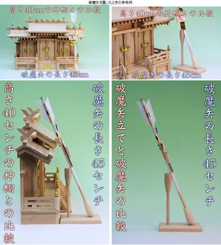 75cmほどの長さの破魔矢までなら立てかけれます 「立てる」と「立てかける」は意味合いが違うので、この破魔矢立ては「立てかける」ように破魔矢を飾ることができるスタイルのものになる。 仮に神棚の近くで使う場合、破魔矢を「立てる」「立てかける」よう…