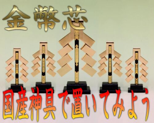 神鏡、祓串と組み合わせると本格的な祭り方に近づきます 見たことが有る人であればピンとくるものがあるはず、知らない人ならこれからきっとどこかで見かけるはず、、、それぐらいありふれた神具の置き方に、祓串・神鏡・金幣芯のトリプルコンビがある。 た…