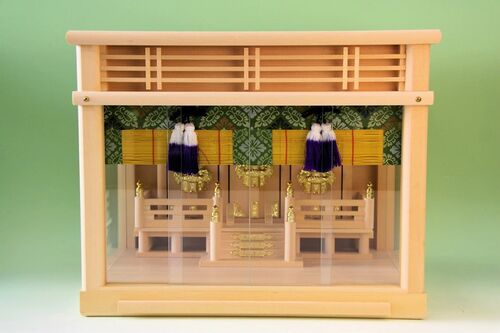 小型サイズのガラス箱宮三社の神棚 小さな神棚でもしっかり祭れる容量 小さな三社の神棚、ガラス箱宮の代表的なサイズが幅1尺6寸(16号)サイズになるかと思う、これ以上小さなものとしては筋幕聖13号というのもがある。 装飾的な意味合いとしてはかなり異…