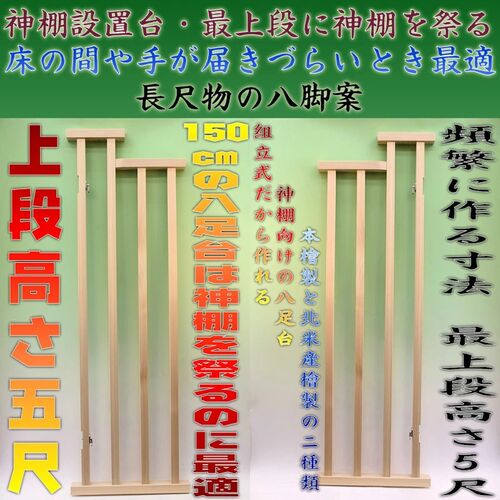 高さ150cmまでなら同一料金 八脚案には既製品というものはほぼ無し 使う人の要望に合わせて作るのが八脚案なので、極一部の決まりきった用途に使う八脚案を除けば、既に作ってあるようなものは無いと考えてもらうといいかと思う。 高さを決めて、幅を決めて…