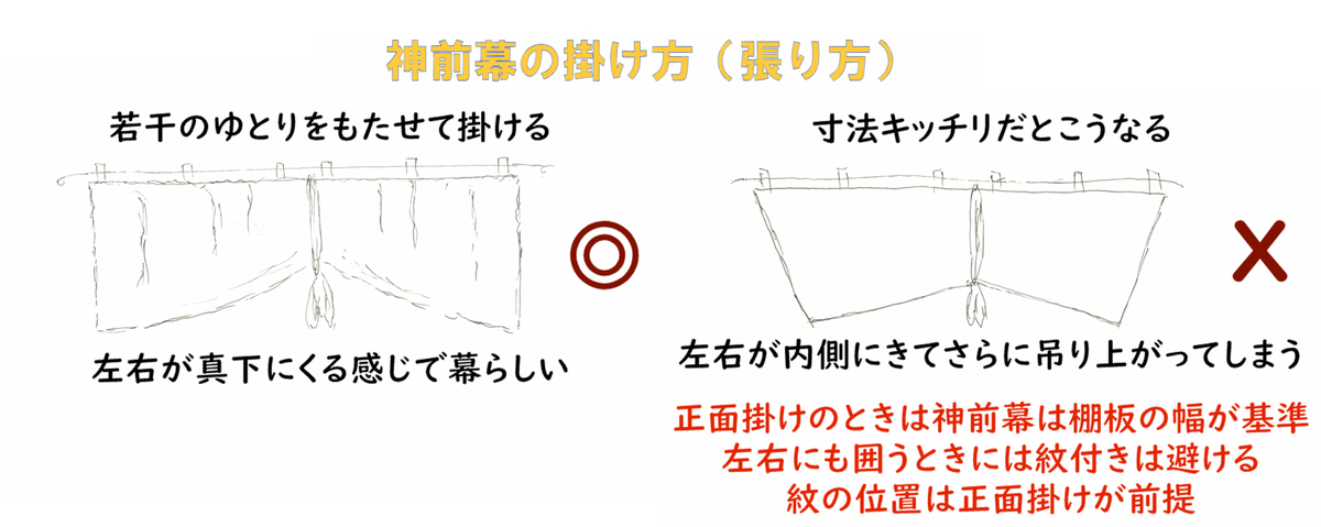 神前幕は棚板で使うのが前提だから、寸法は棚板基準で作られている。